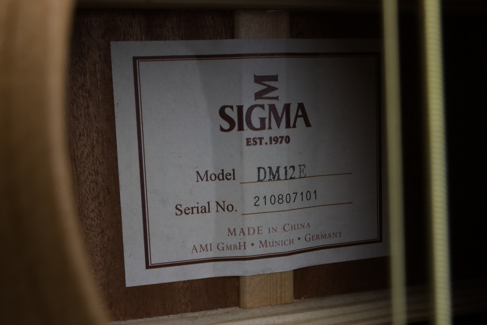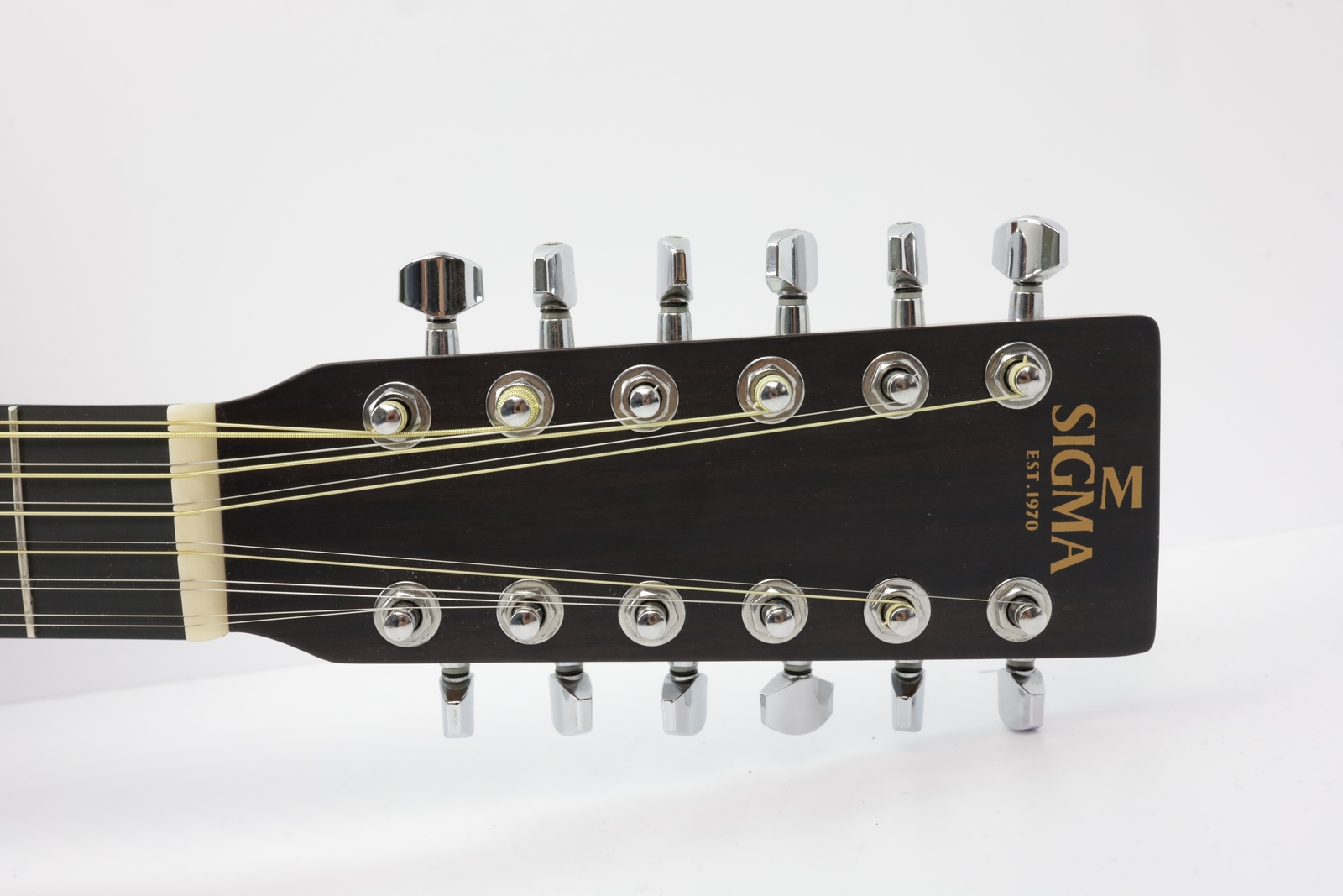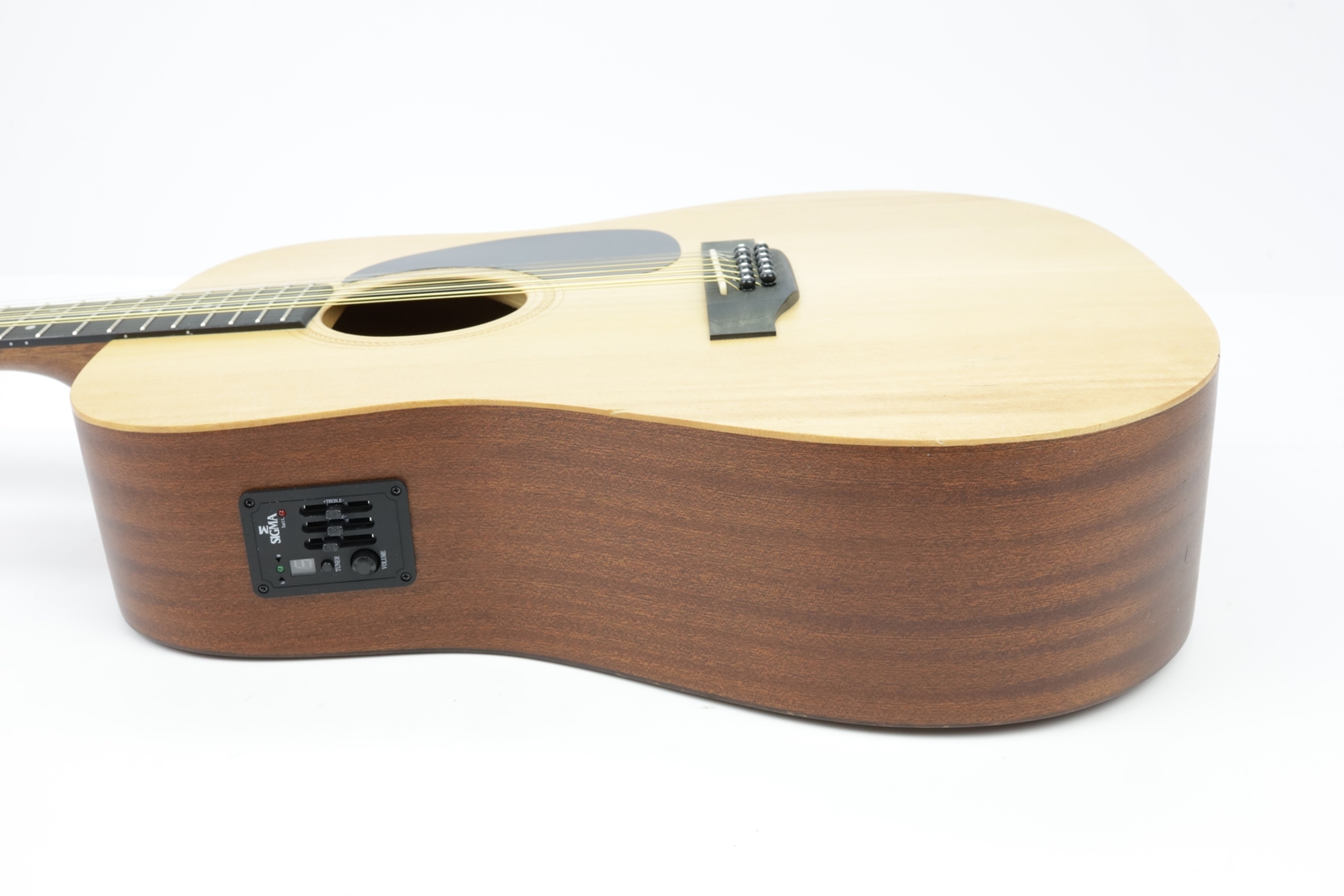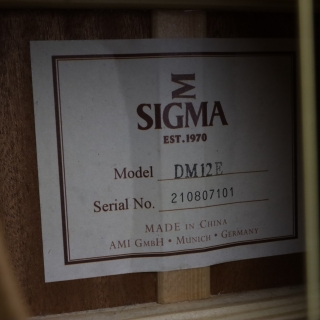 Přední deska kytary je zhotovena z masivu smrku Sitka, zadní deska a luby jsou vyrobeny z vrstveného mahagonu. Díky osvědčené kombinaci smrku a mahagonu a vyváženému poměru zvukové průraznosti a vřelosti představuje Sigma DM12E univerzálně dobrou volbu pro řadu hudebních stylů.
