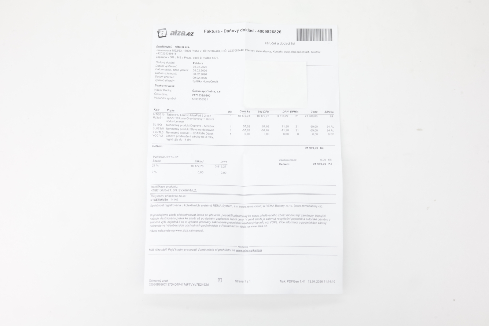 + krabice, nabíječka, aktivní stylus Lenovo Digital Pen 2, záruka ALZA do 8.2.2028